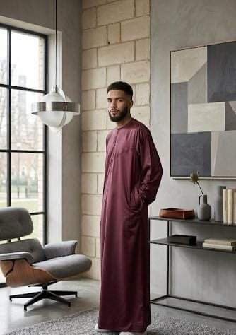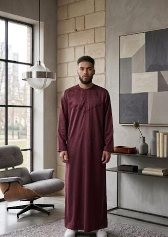 The maroon coloured Emirati Thobe is a striking blend of traditional design and modern sophistication, perfect for men who appreciate both style and comfort. This maroon coloured thobe offers a rich, elegant colour that stands out with subtle grace, making it an excellent choice for formal occasions, cultural events, or daily wear.