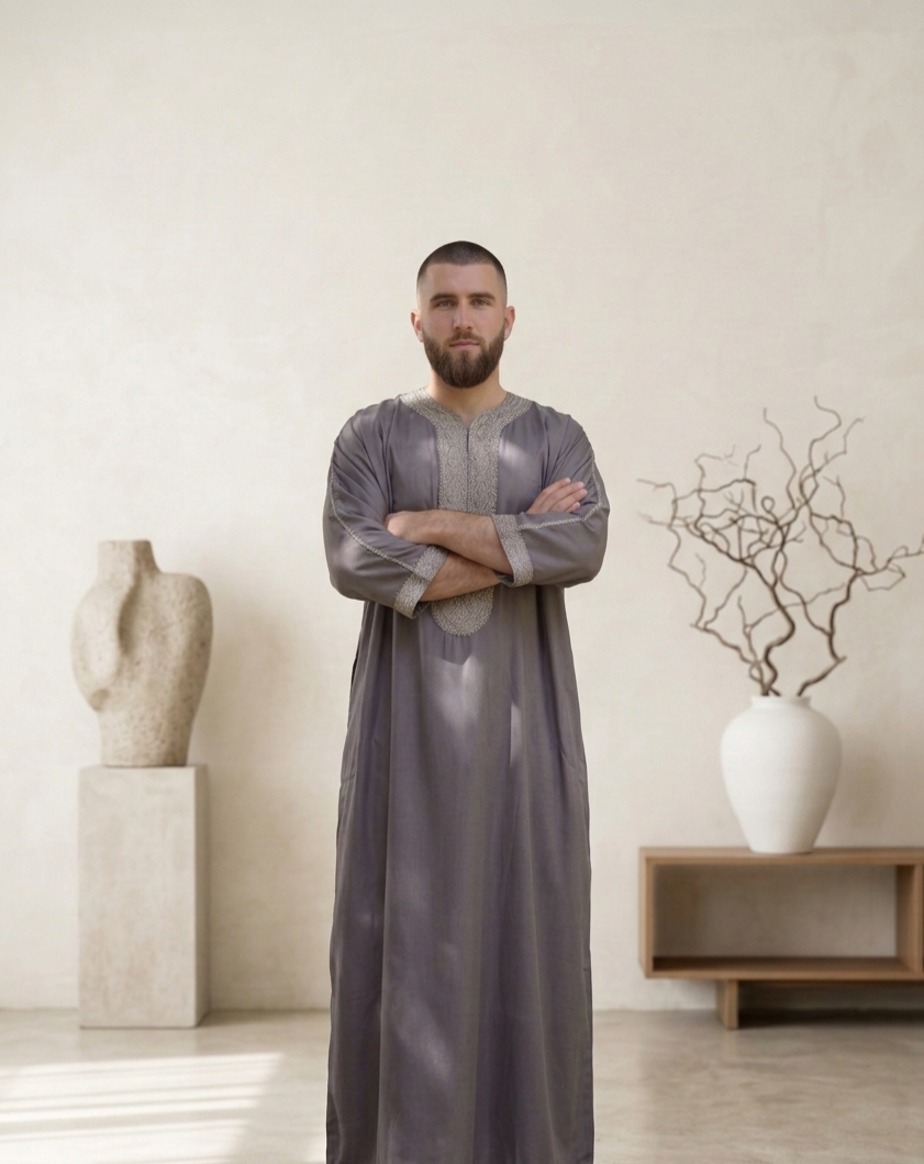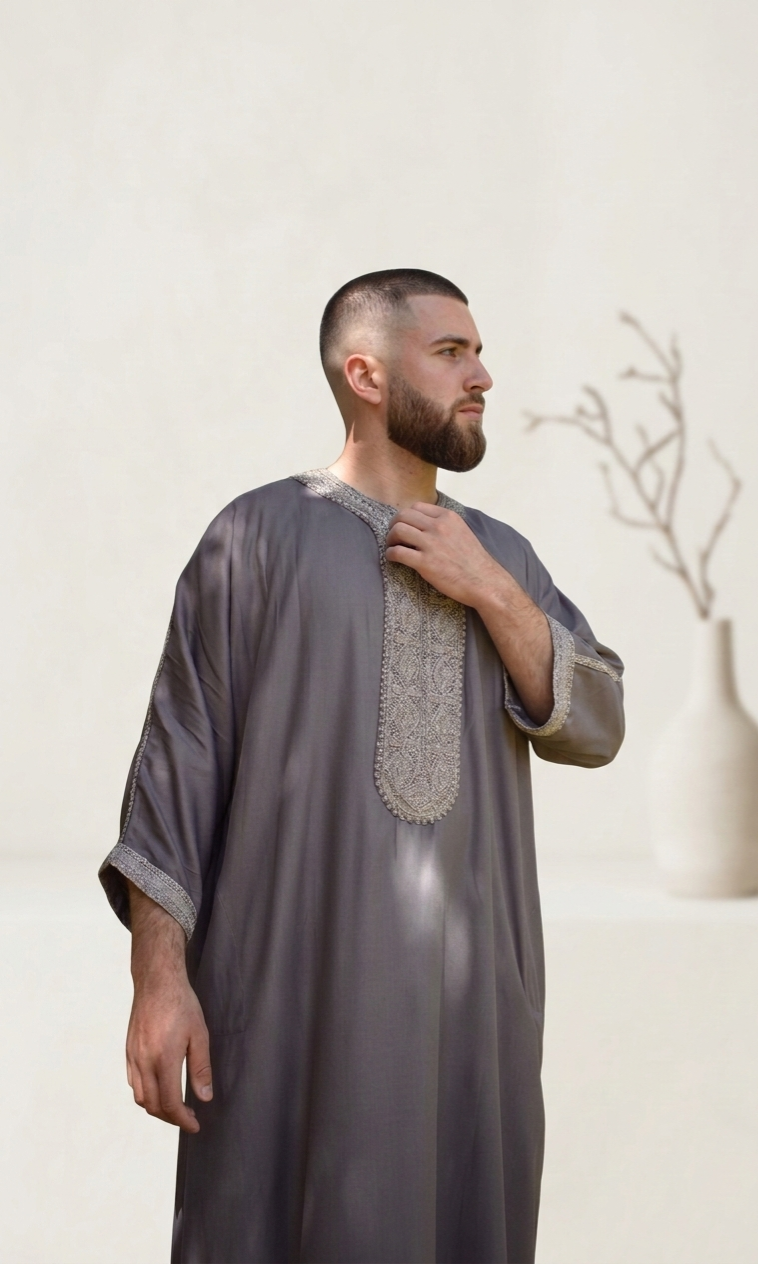 Step into timeless tradition and effortless style with our Moroccan Thobe, a symbol of cultural pride and refined craftsmanship. Expertly tailored using premium-quality fabric, this thobe features the iconic Moroccan embroidery and detailed handiwork along the neckline and sleeves, offering a blend of heritage and contemporary fashion