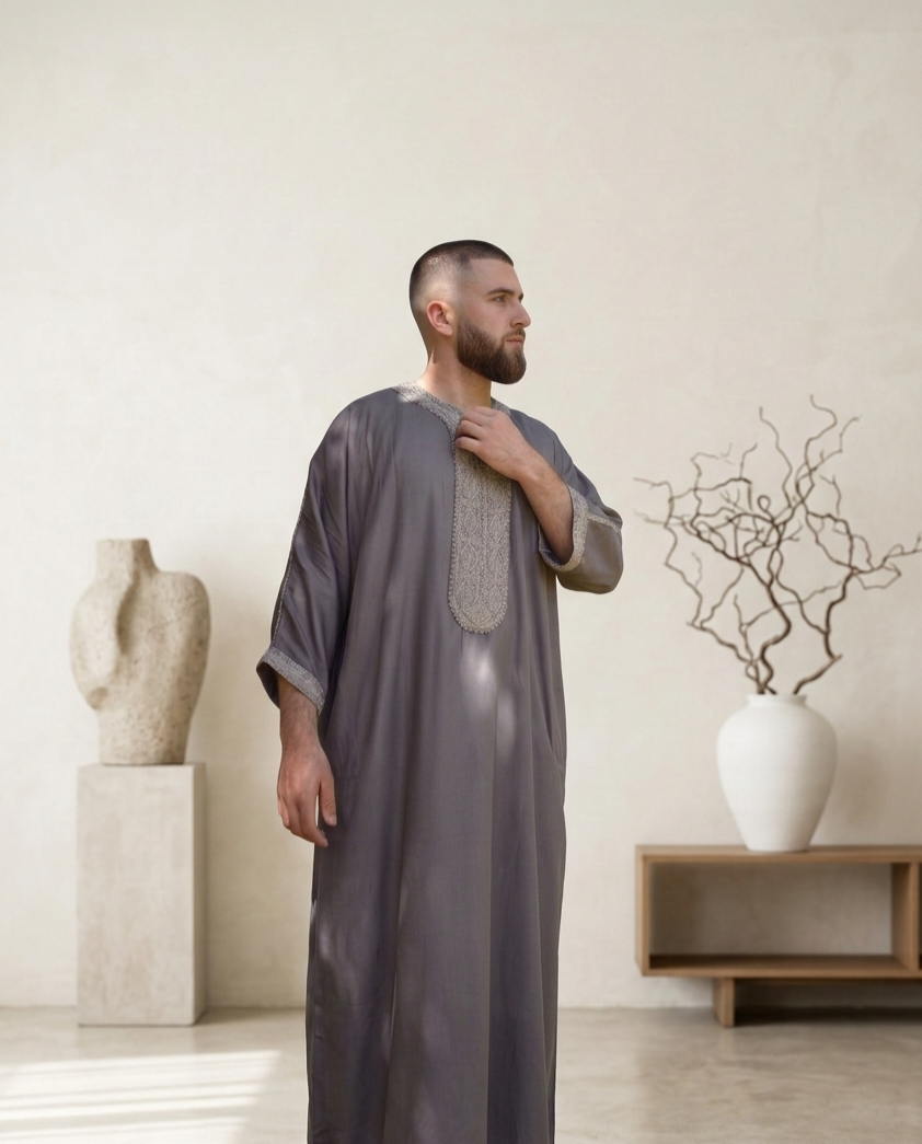 Perfect for both special occasions and everyday elegance, the flowing design provides maximum comfort while maintaining a dignified silhouette. Whether you’re attending a wedding, Eid celebration, or a formal gathering, this thobe makes a statement of grace, dignity, and authenticity.